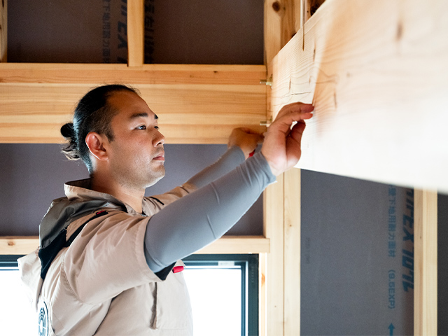 現在は、新築住宅の内装を中心に、大工仕事全般を担当しています。リフォームやリノベーションにも関わっており、最近では「リノベ委員会」のリーダーとして、パッケージ開発にも取り組んでいます。