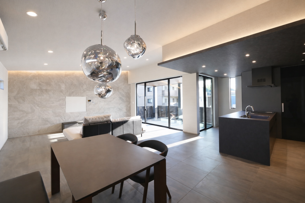 LDKとつながるワイドバルコニーが、室内の開放感をもたらしてくれる、デザインと機能性が融合した素敵なお家が完成しました。