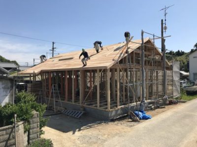 2020-05-16 / 最終更新日時 : 2021-05-01 toryu 現場レポート 今治市大西町にて上棟を行いました。 5月14日(木) 今治市大西町九王にて上棟を行いました。 目の前には海が見渡せる平屋のお家です。 H様、おめでとうございます。